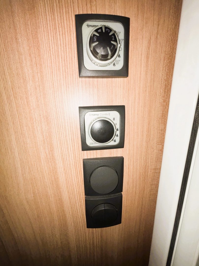 Heated by a Truma gas and electric combi boiler which heats the interior and the water. All windows are fitted with blackout blinds and insect blinds with a fly screen on the habitation door and Remis blackout blinds on the windscreen and blackout screens on the cab door windows.