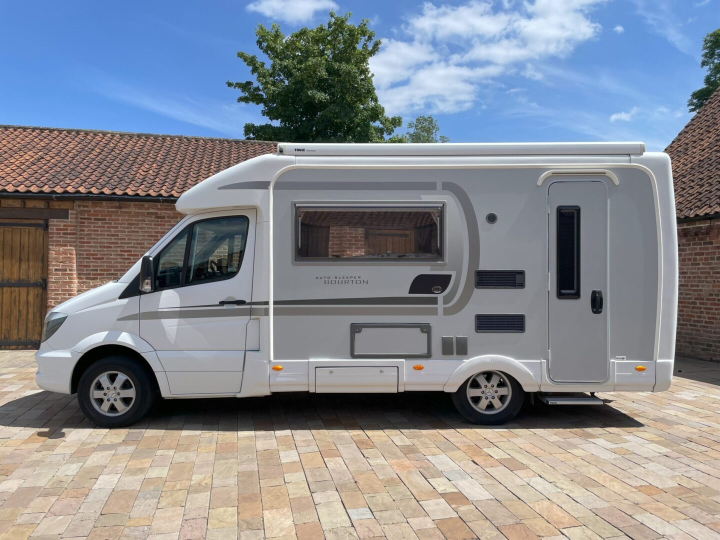 AutoSleeper Bourton ( 2015 ) 2 Berth Right Hand Drive Motorhome. Mercedes 2.2 diesel with 7 speed Automatic gearbox, power assisted steering and cruise control. Cab A/C. Mileage 20000 miles with recent service history. Length 6.445 metres, width 2.3 metres, height 2.9 metres. GVW of 3500kg with a payload of 520kg.