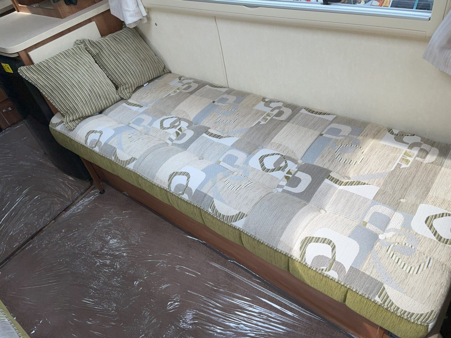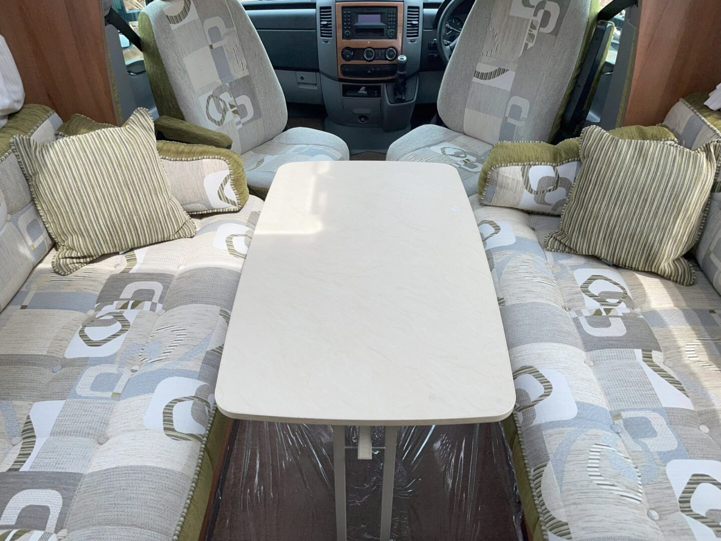 Coming forward you are in the lounge with two side facing sofas and two swivel front seats where you can also use the dining table and smaller occasional table. With this seating configuration, several windows and skylights this is a light and airy social space.