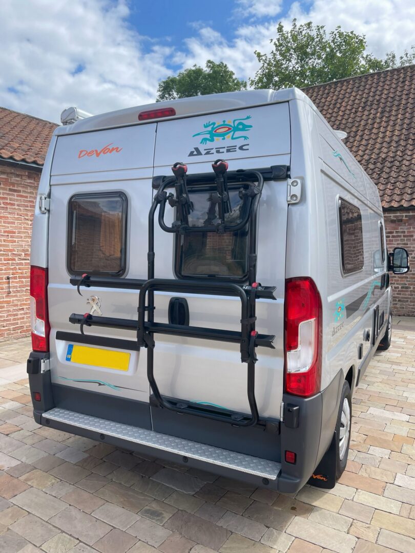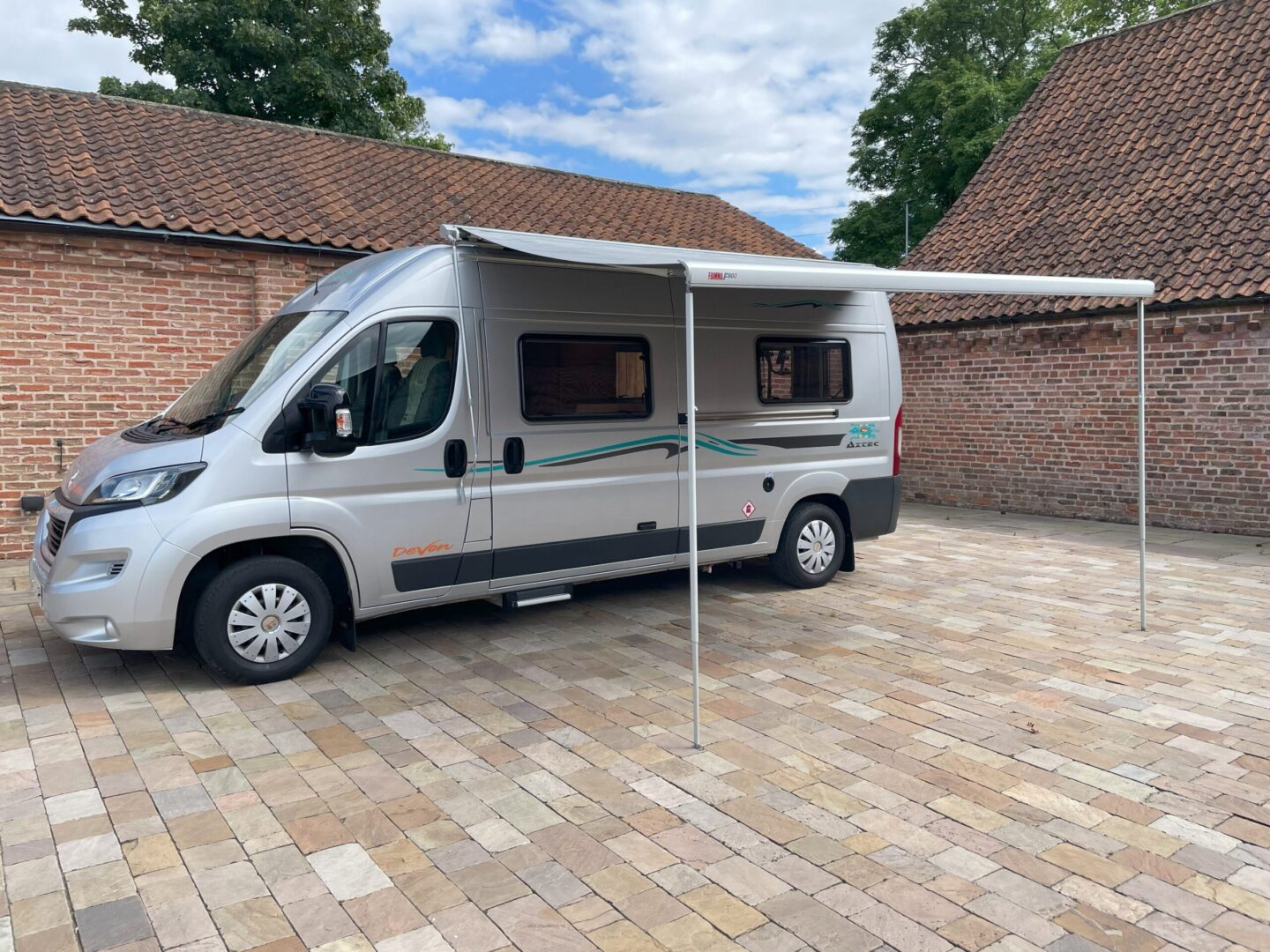 The Devon Aztec is a super, compact well designed two berth with no compromise when it comes to space and yet it is only 5.99 metres in length. It is a credit to its previous owners both inside and out and with a full, up to date, service history you can be happy that the mechanics have been looked after too. It has all the right extras fitted including a new Fiamma awning, solar panel, underslung LPG refillable tank, reversing sensors and a Fiamma bike rack ( currently not fitted ). A great size for parking anywhere and plenty of interior space and facilities for anything from a quick weekend away to a couple of months of winter sun.