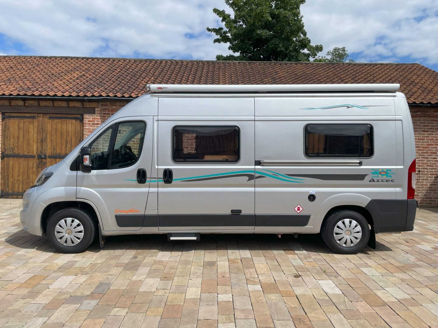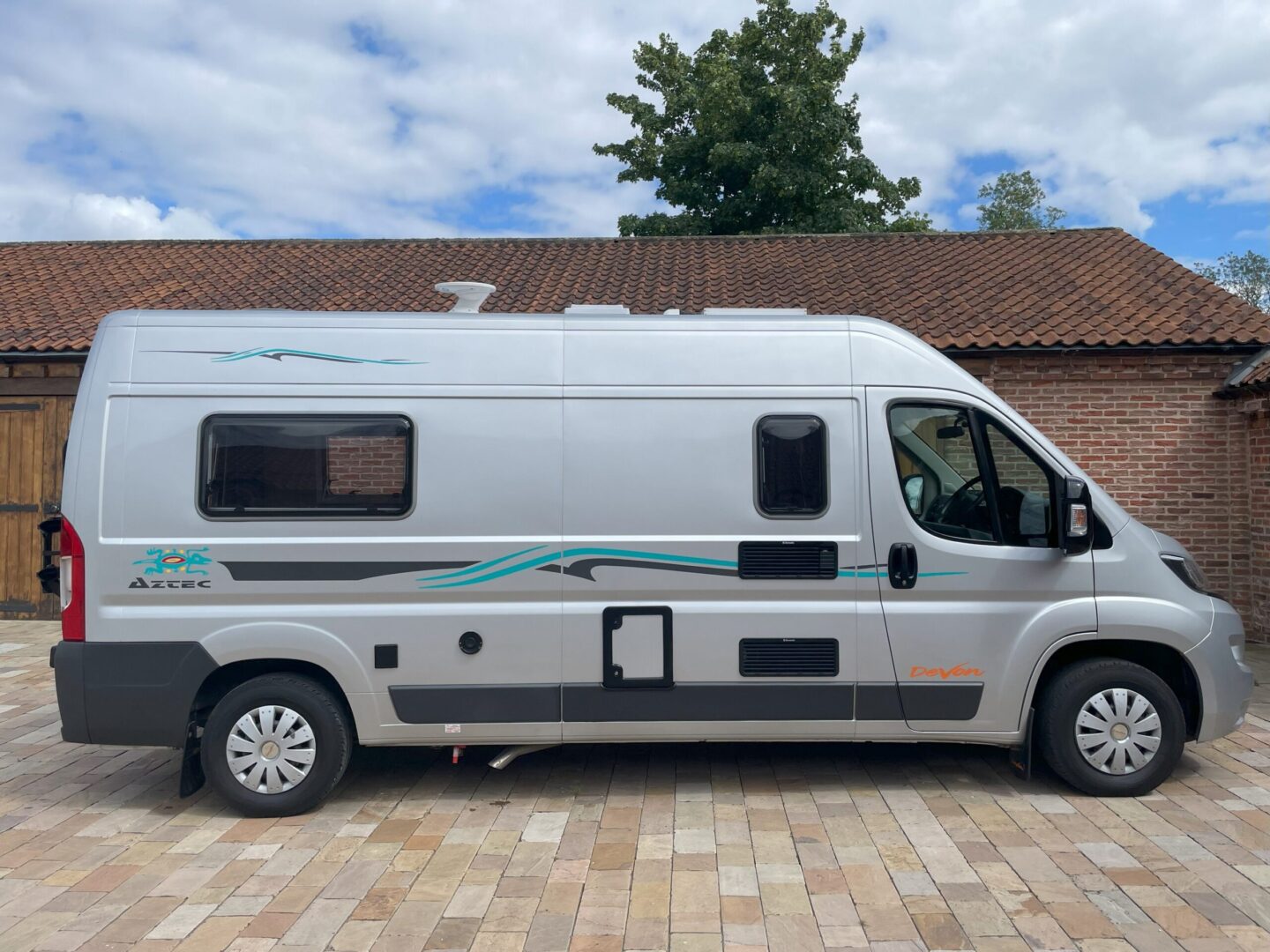Devon Aztec ( 2017 ) 2 Berth Right Hand Drive Motorhome. Registered on 31/12/2017, one day later it would have been a 2018. Peugeot 2.0ltr HDI 130, 6 speed manual gearbox with cruise control, power assisted steering and cab air conditioning . Mileage 18000 miles with full service history. Length 5.99 metres, width 2 metres, height 2.6 metres. GVW of 3500kg, unladen weight 2580kg therefore a load capacity of 920kg.
