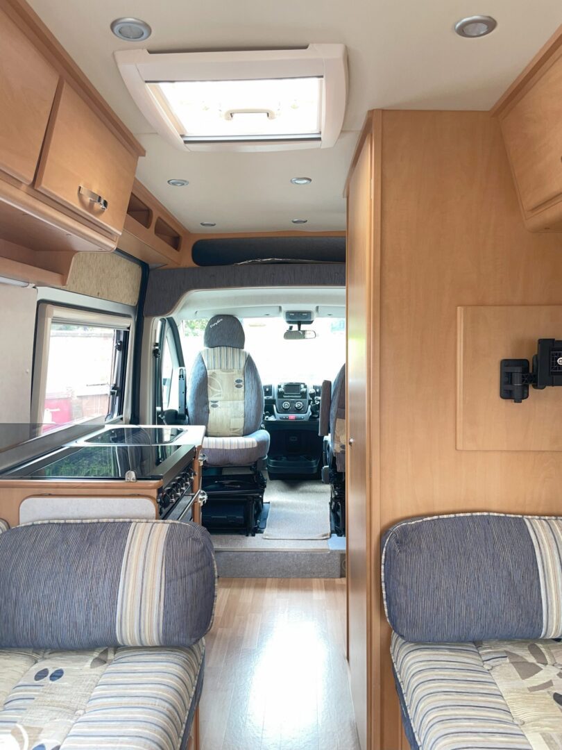 Starting at the front you have two swivel seats. With the sliding door open you have a fantastic indoor/outdoor living room, put the awning out and it’s even better.