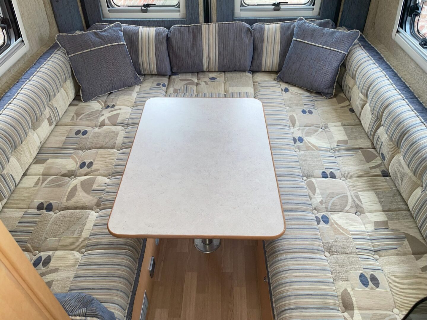 Very good silver bodywork with graphics. Fitted with Brand new Full length wind out Fiamma awning, 100 Watt solar panel charging the leisure battery, reversing sensors, Fiamma 2 bike cycle rack, New Status TV aerial, New electric entry step, refillable LPG tank and 240v hookup. On board fresh water tank (66ltrs) and waste water tank (50ltrs)