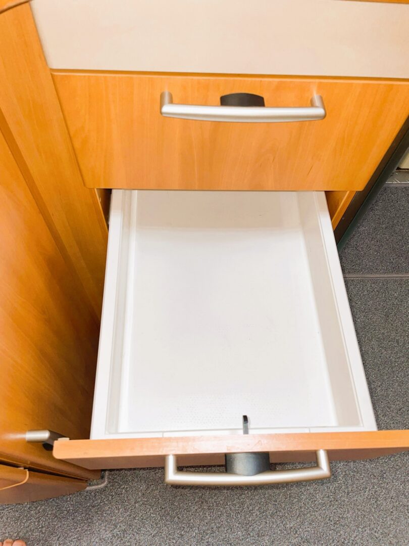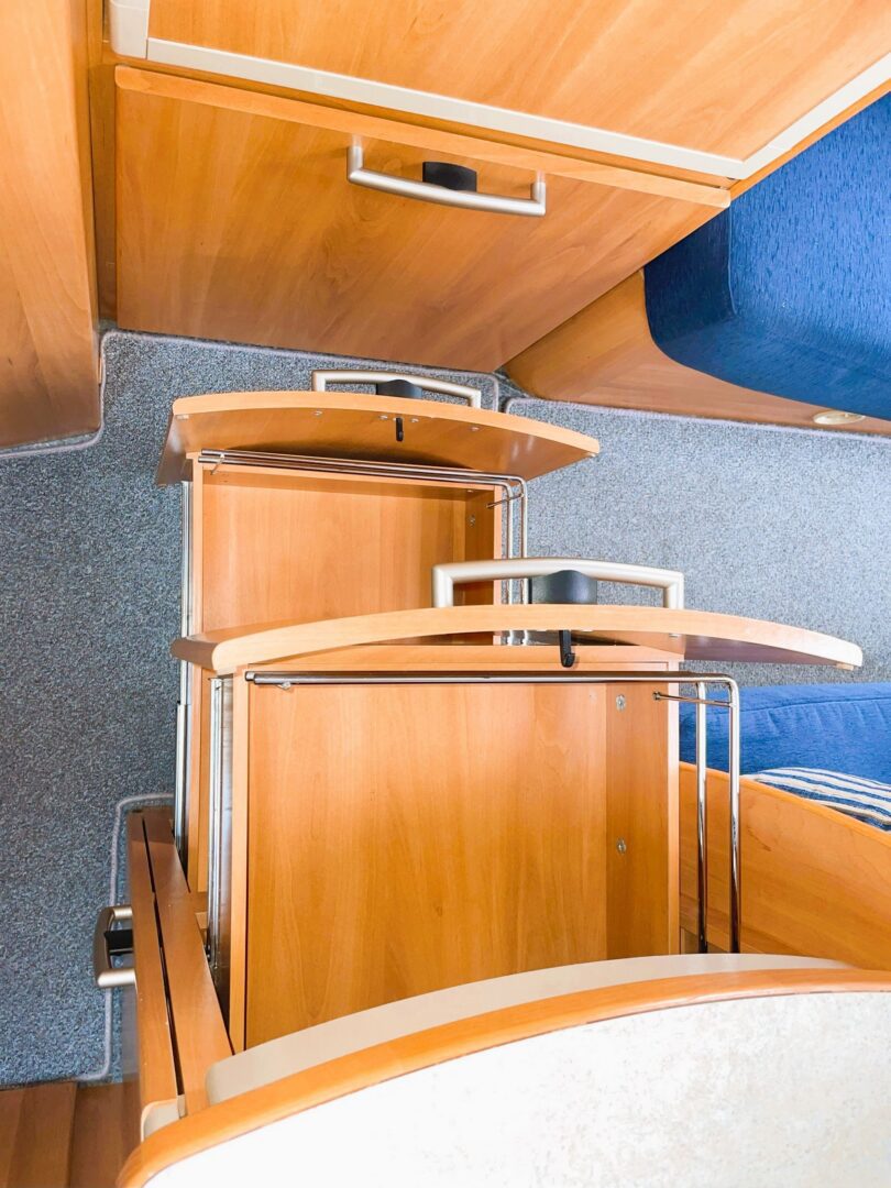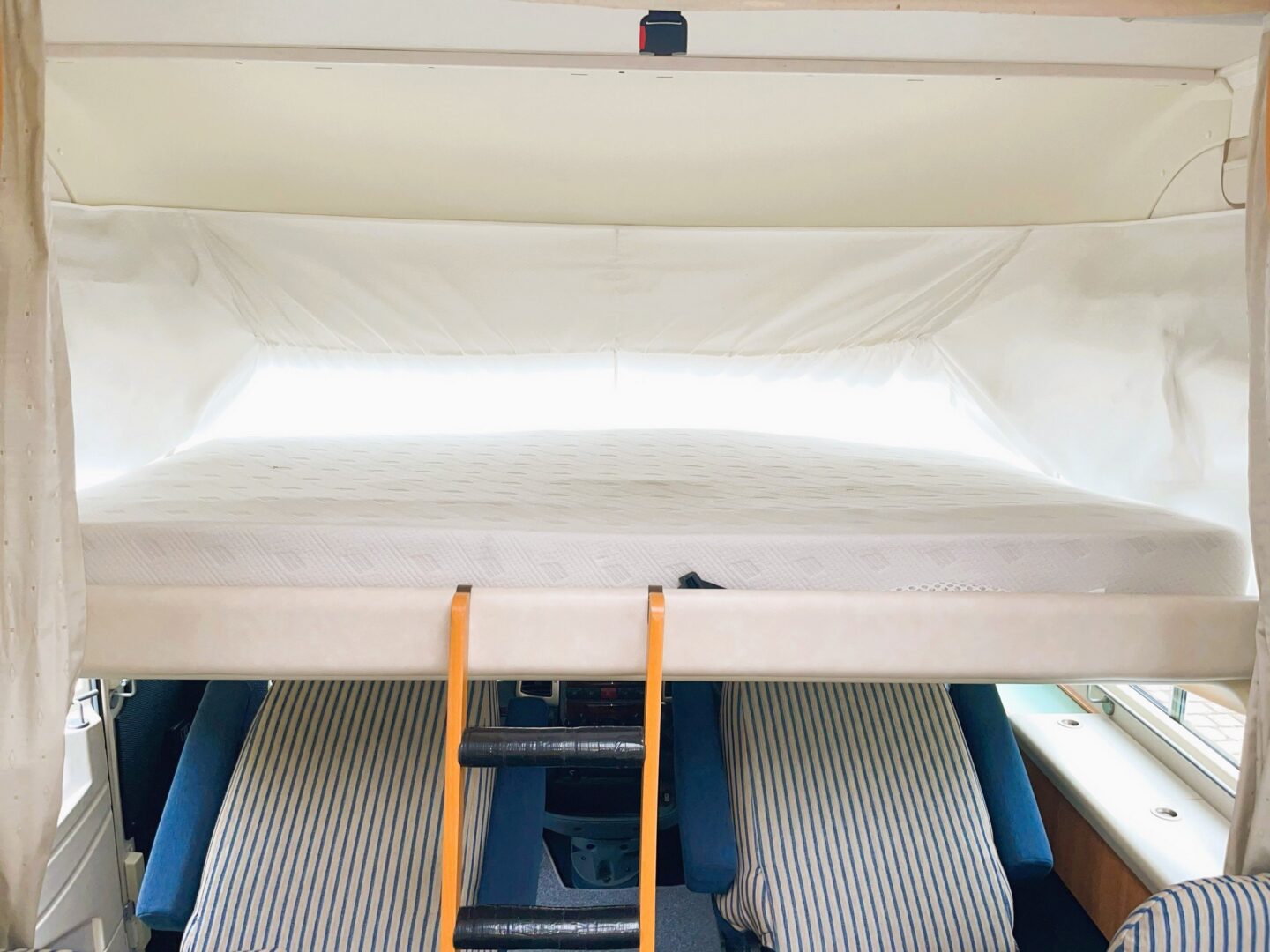 Up front you have the captains swivel seats and over the cab is the famous Hymer pull down bed. The cab is fitted with air conditioning.