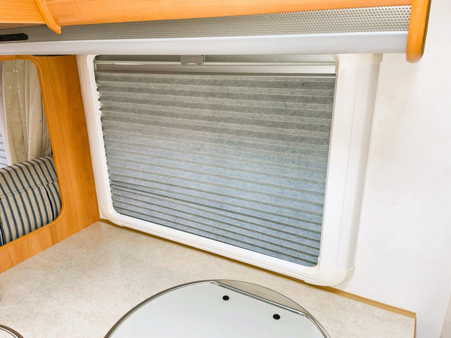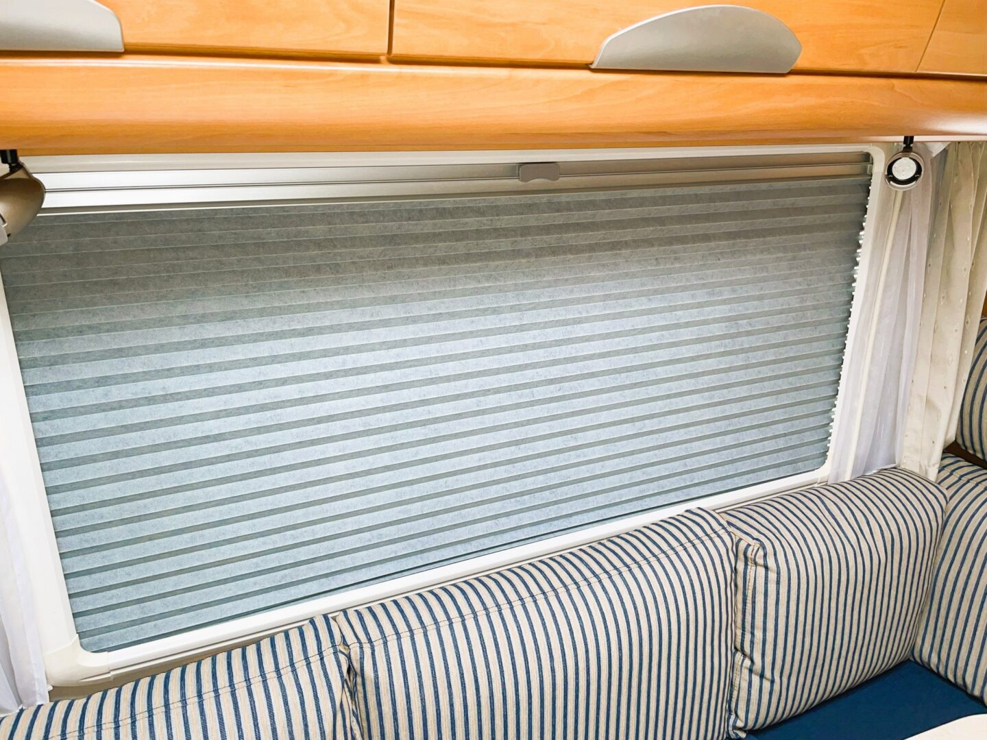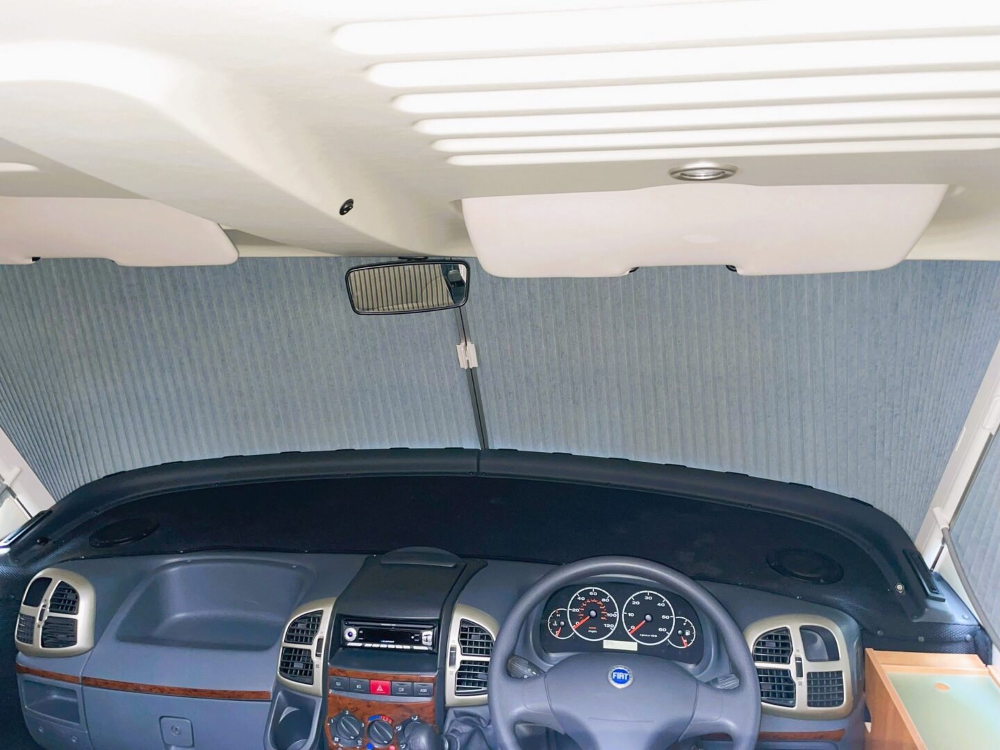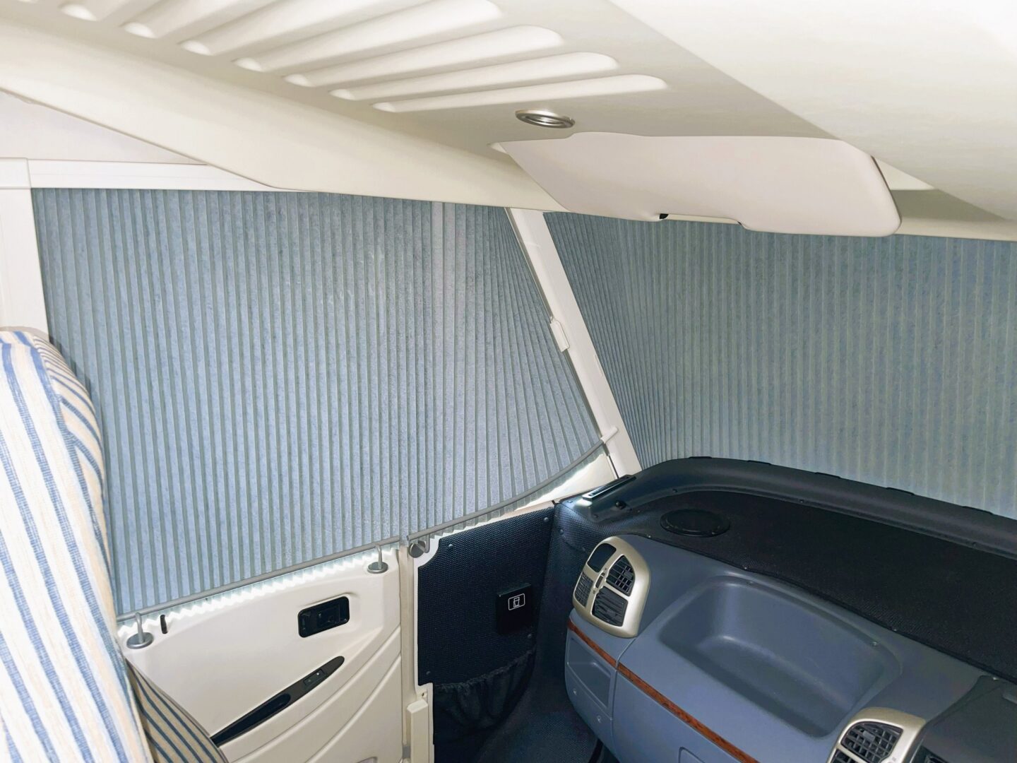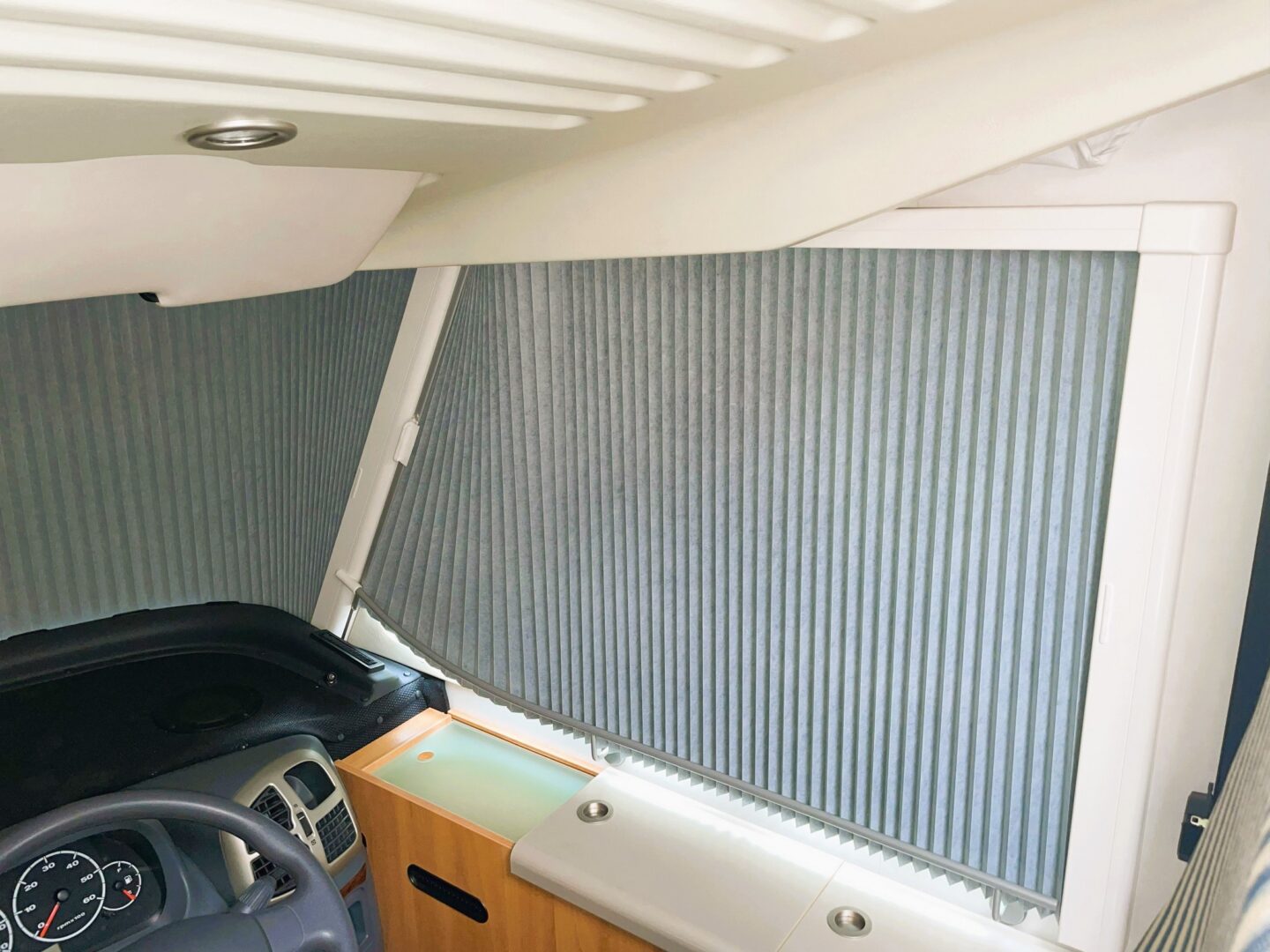 Heated by a Truma gas combi boiler which heats the interior and the water ( water can also be heated by electric ). All windows are fitted with Remis concertina blackout blinds and insect blinds with Remis concertina blackout blinds on the windscreen and cab