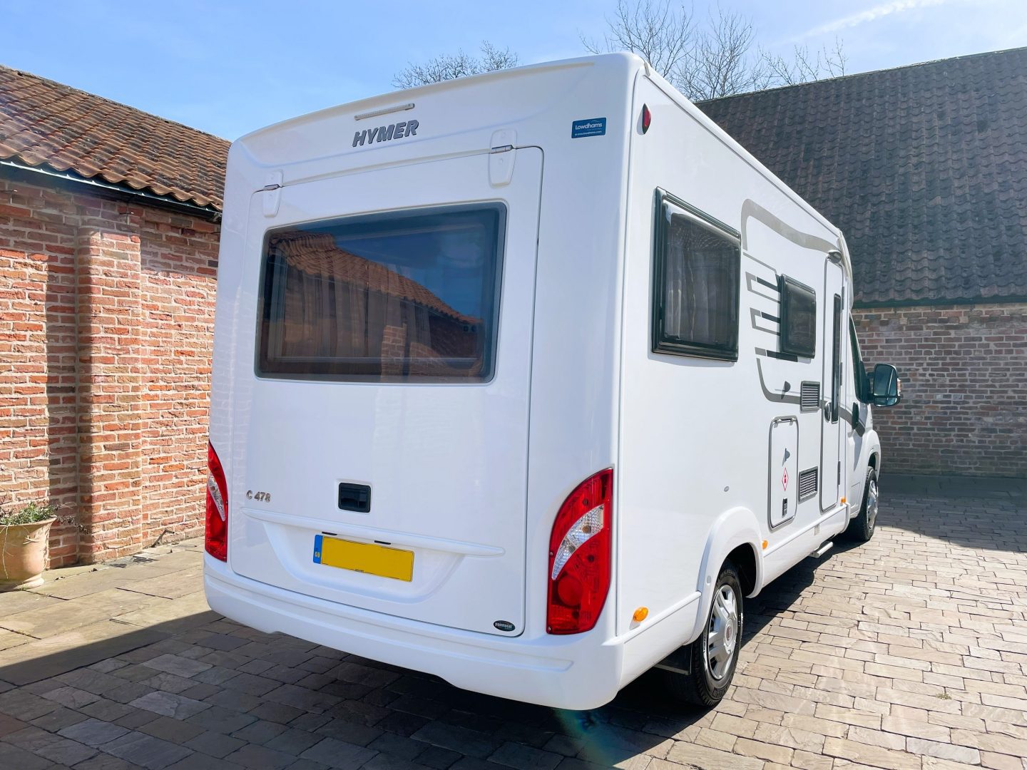 Hymer C478 (2014), 4 Berth Right Hand Drive Motorhome. Fiat 2.3 130 Multijet engine, 6 Speed Manual gearbox with cruise control and power assisted steering and cab A/C. Just One Owner from New and Extremely low Mileage of just 9,400 miles. Length 6.38 metres, width 2.1 metres, height 2.75 metres. GVW 3500kg with a 630kg payload.