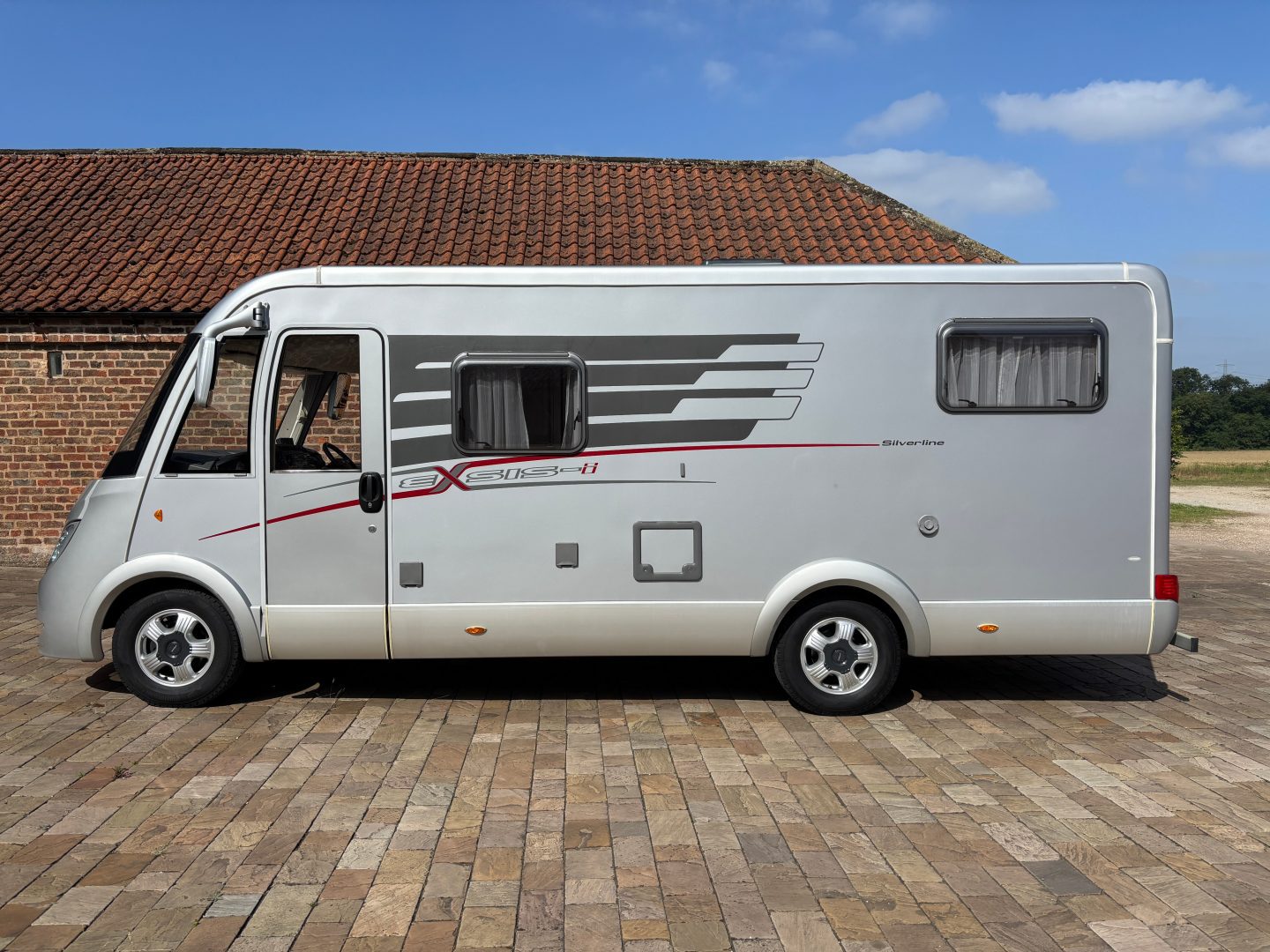 The Hymer Exsis i 562 is a rare model and unlike many Exsis models is a full 4 berth with the overcab bed. The silverline body colour really sets it off, especially with the Ford alloy wheels. It has clearly been looked after and maintained with the interior being in super condition. Great extras including solar, rear view camera, refillable LPG system and tow bar. A Hymer to enjoy and be really proud of.