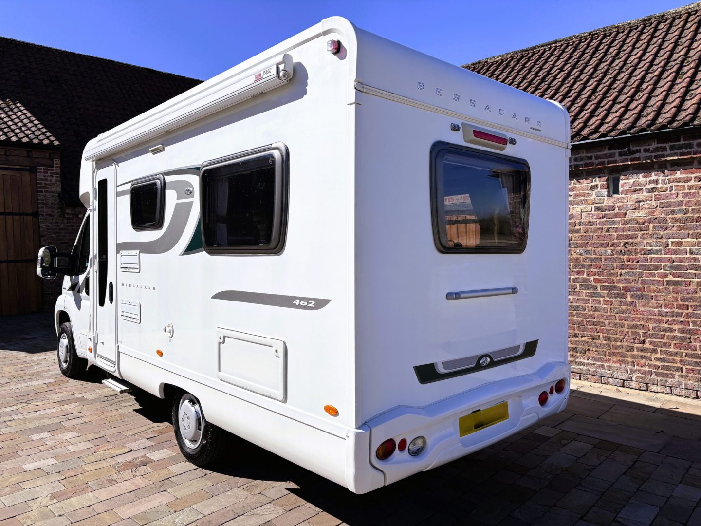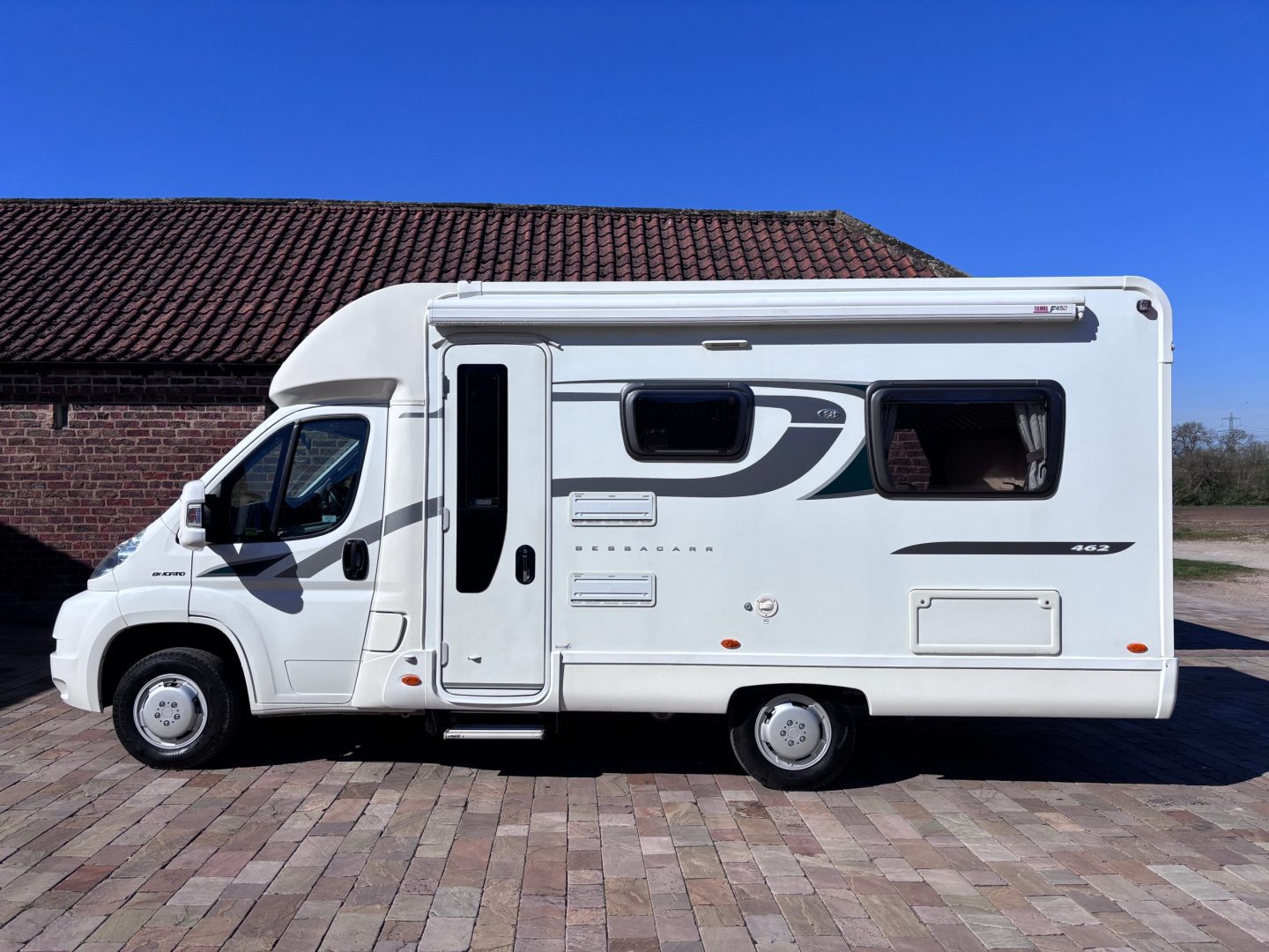 Bessacarr E452 ( 2014 ) 2 Berth Right Hand Drive Motorhome. Fiat 2.3 TD 130, 6 speed manual gearbox with cruise control, power assisted steering and cab air conditioning, electric windows and mirrors . Very Low Mileage of 19000 miles. Length 6.5 metres, width 2.2 metres, height 2.8 metres. GVW of 3500kg.
