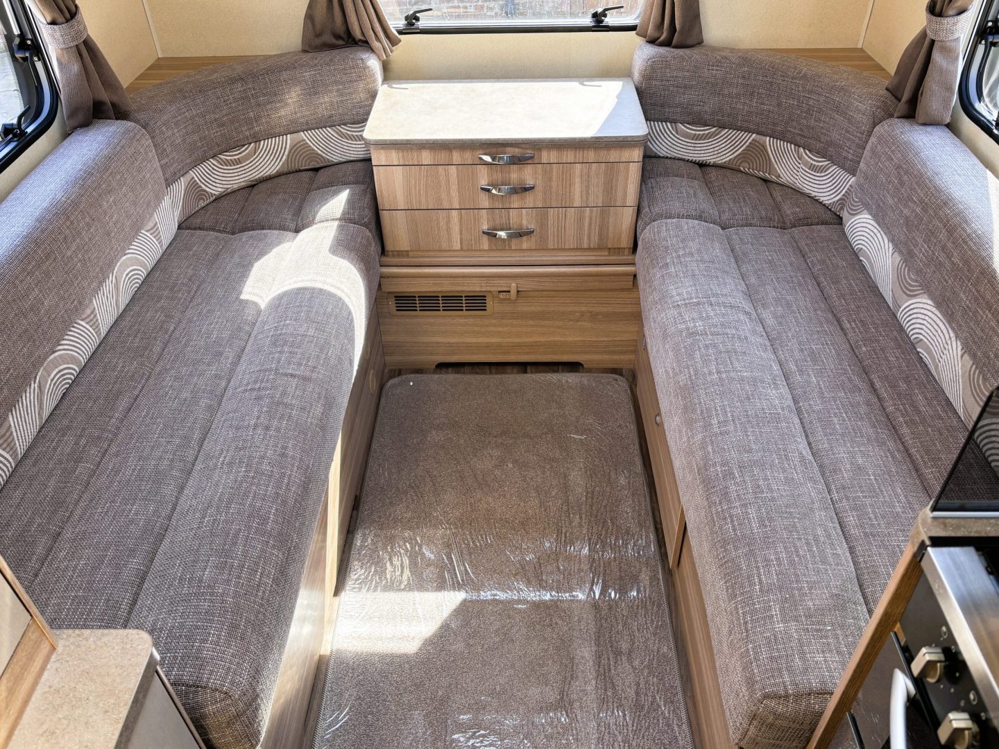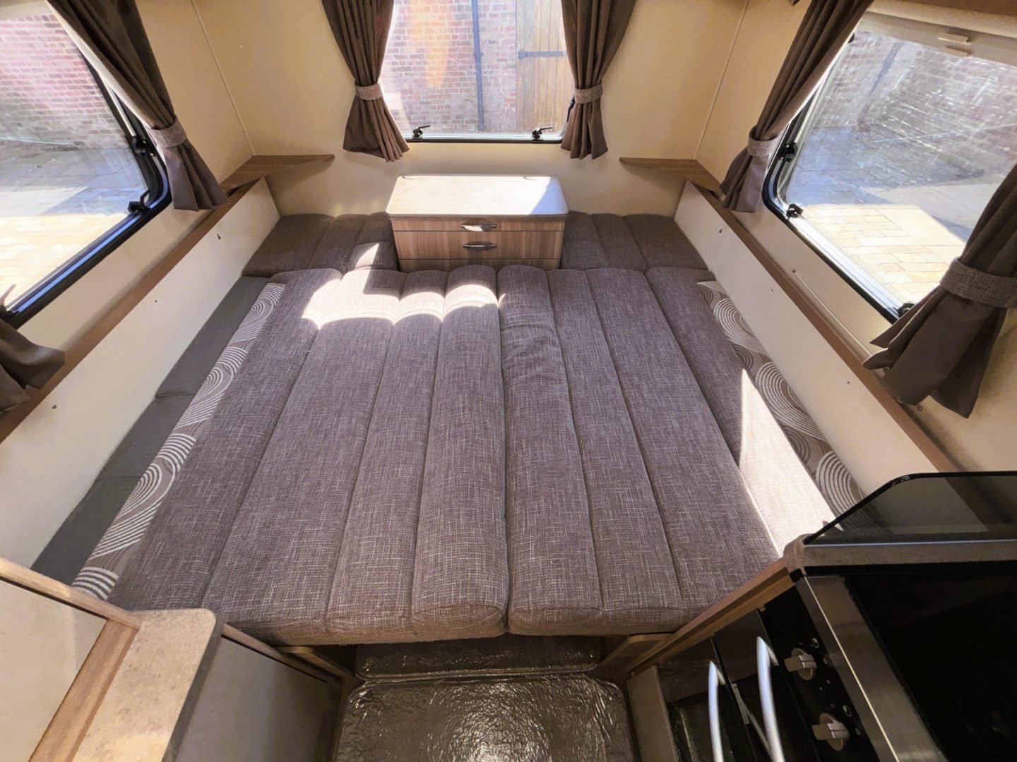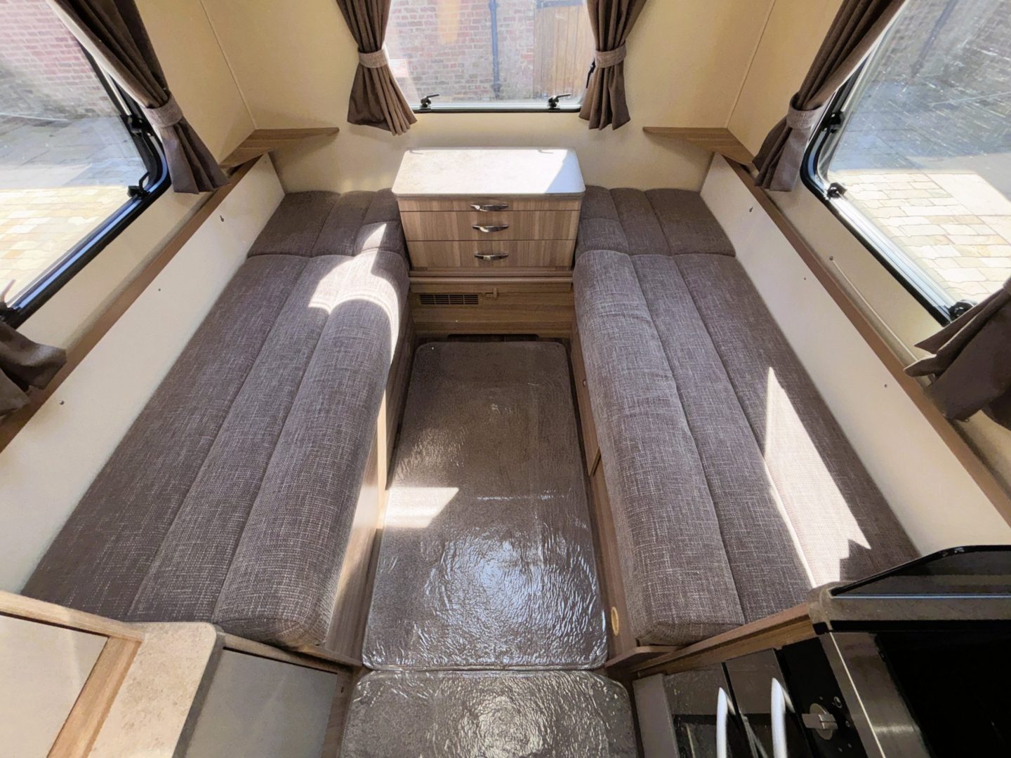 This Bessacarr with just 19000 miles has clearly been cherished by previous owners. The build quality really shows and the interior looks a lot newer than 12 years old. At just 6.5 metres it is very easy to use and park but doesn’t compromise on interior space, especially in the rear lounge which just says “grab a big cushion and chill out”.