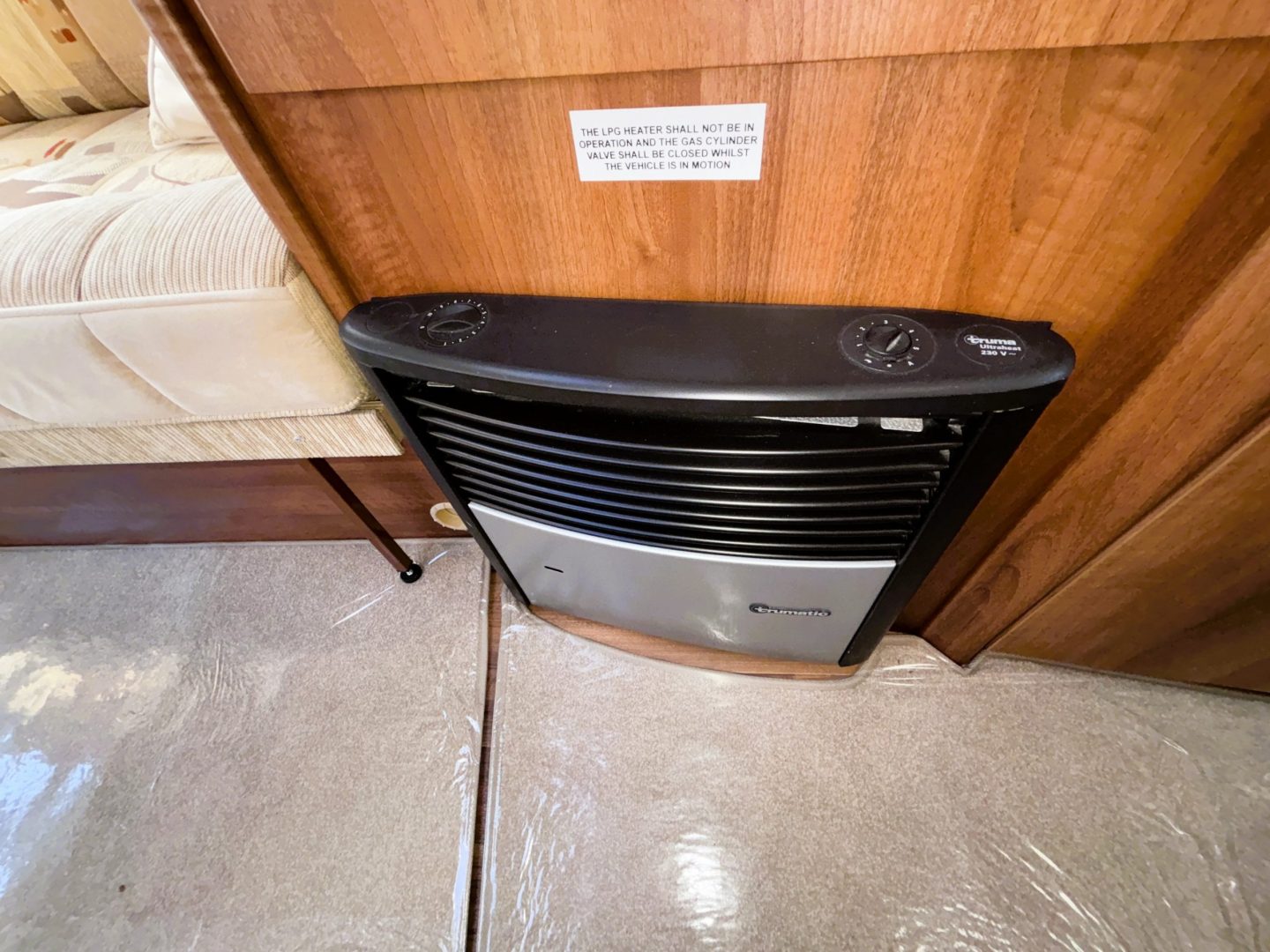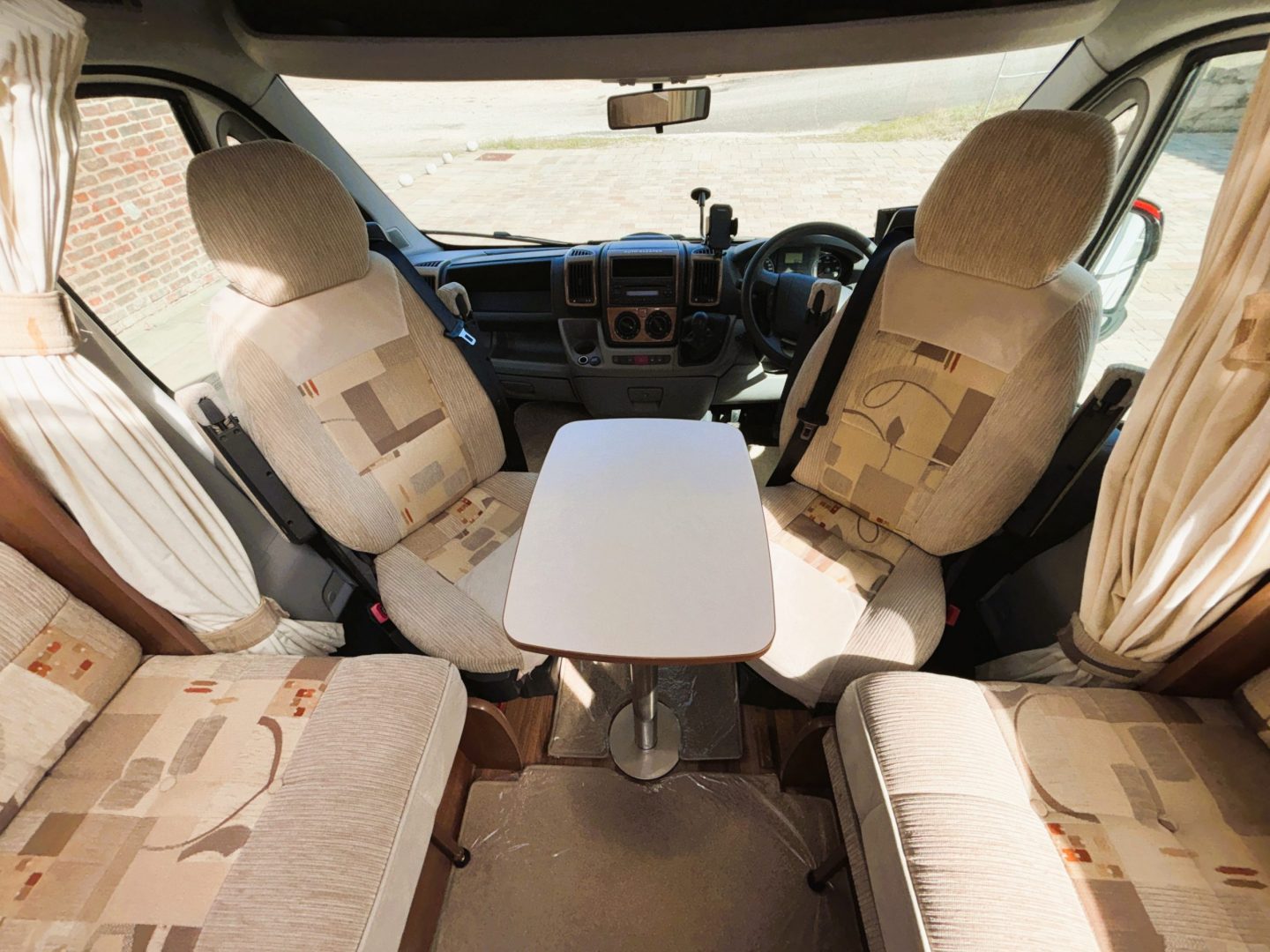 Full Truma Combi blown air heating and water heater( 240v and gas powered ). On board fresh and waste water tanks. All opening windows and rooflights have concertina blackout blinds and fly screens with curtains for the cab windows.