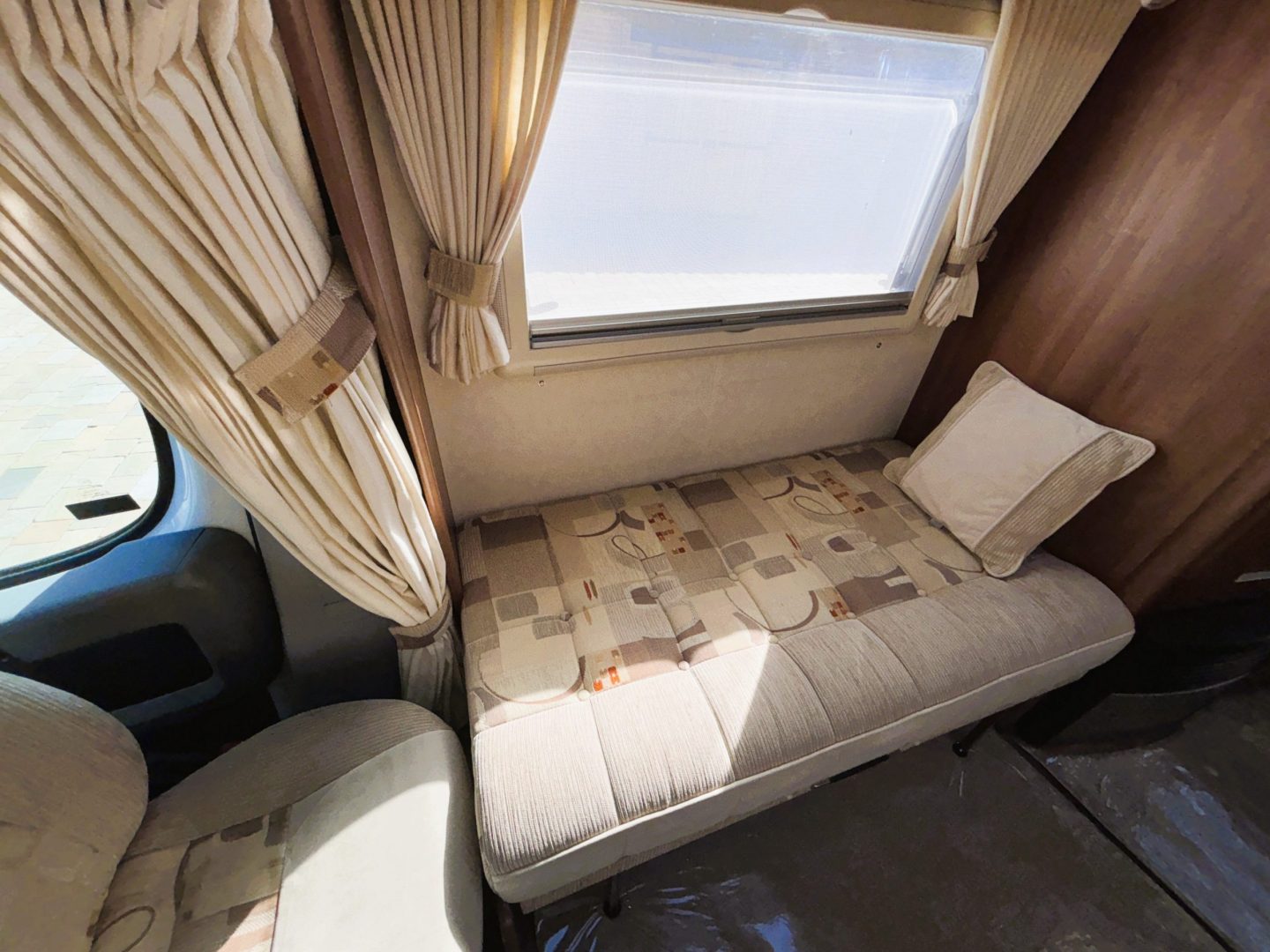 This Nuevo would be a great starter motorhome. Taken in part exchange and priced to sell, an absolute bargain at £23995. It has a full, up to date ( most recent service 23/02/26 ) service history and good, recent, extras like a rear view camera and split charge solar panel. Although compact at just 5.7m it has a spacious interior which is in super condition. The exterior bodywork is very straight although there is some crazing on the grey skirts and the odd imperfections that you would expect on a motorhome of this age but at this price I think you’ll agree with me that it’s quite smart.