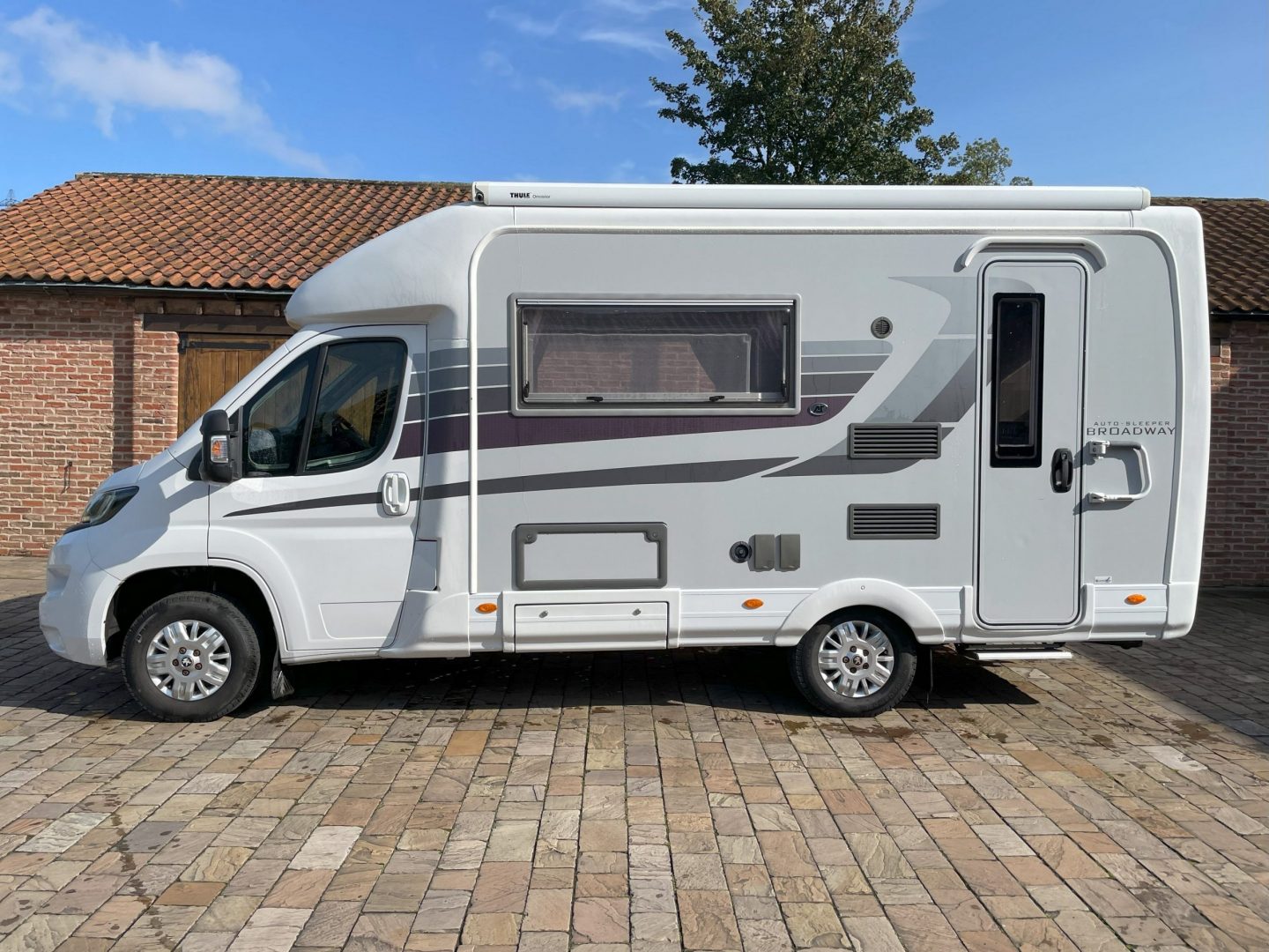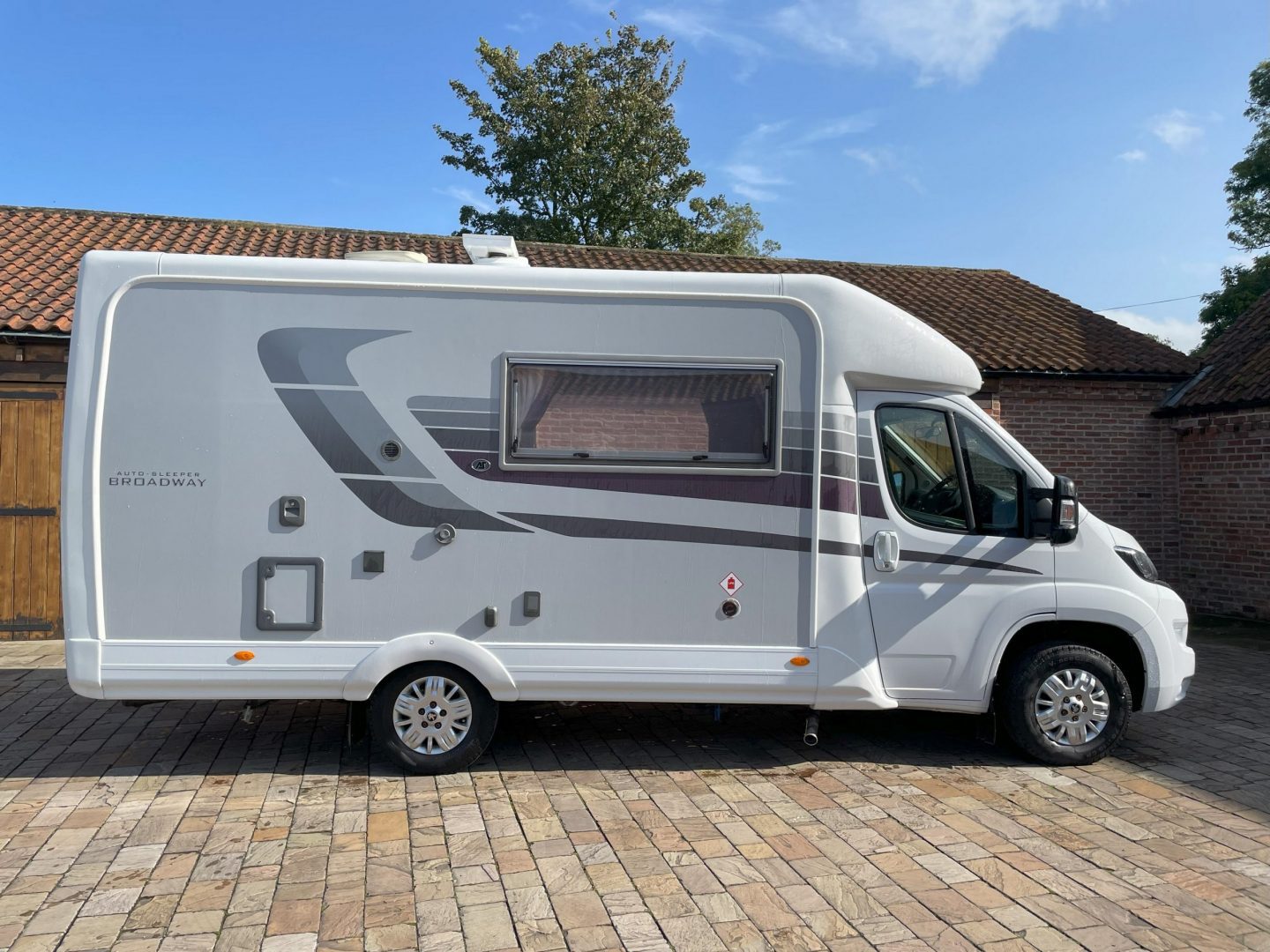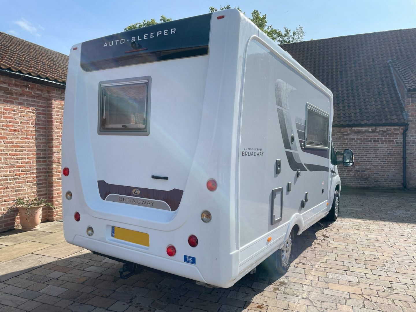 AutoSleeper Broadway EK ( 2016 ) 2 Berth Right Hand Drive Motorhome. Peugeot 2.0 HDi, 6 speed manual gearbox with power assisted steering and cruise control. Cab A/C. Mileage 17000 miles with full service history. Length 6.3 metres, width 2.3 metres, height 2.9 metres. GVW of  3500kg  with a payload of 481kg.