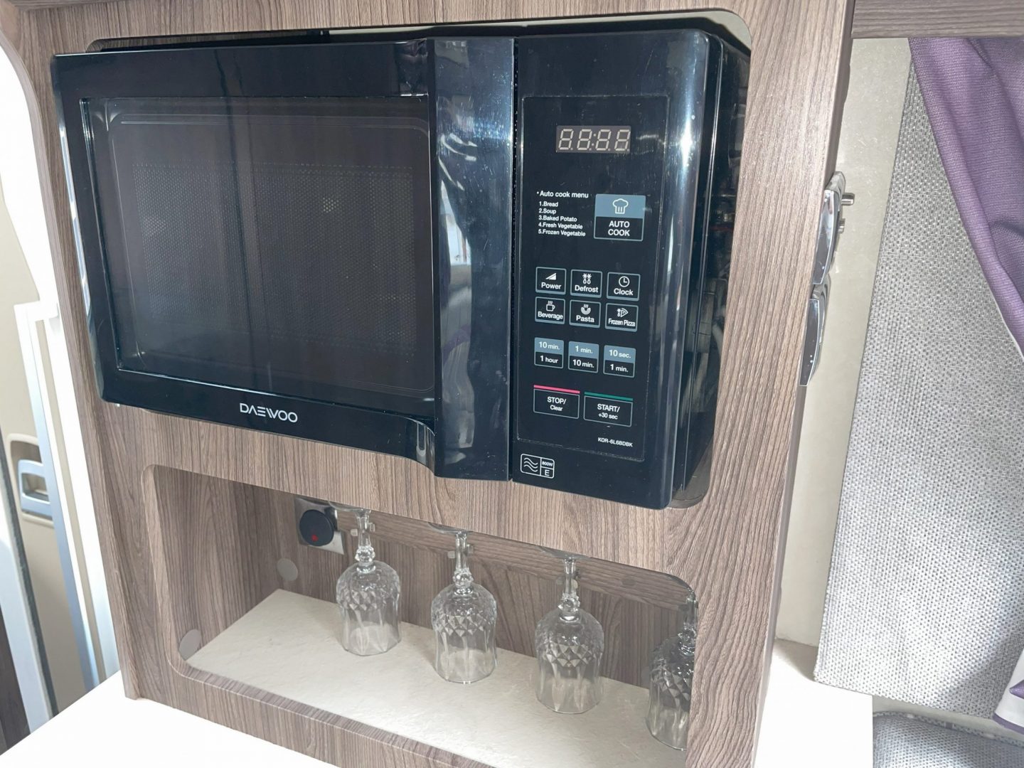 Smart grey and white bodywork with graphics. Fitted with Thule Omnistor awning, solar panel charging the leisure battery, GasIt refillable LPG Gas tank, Fiamma security lock on the habitation door, rear view camera, gas BBQ point, outside 240v electric socket, Tow bar with electrics, rear Air suspension, TV aerial, several storage lockers and 240v hookup point.