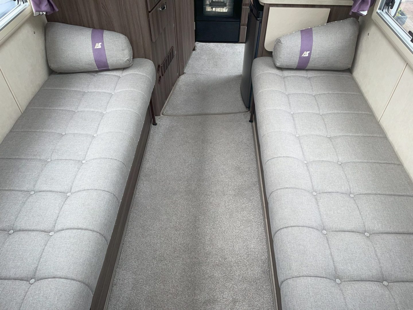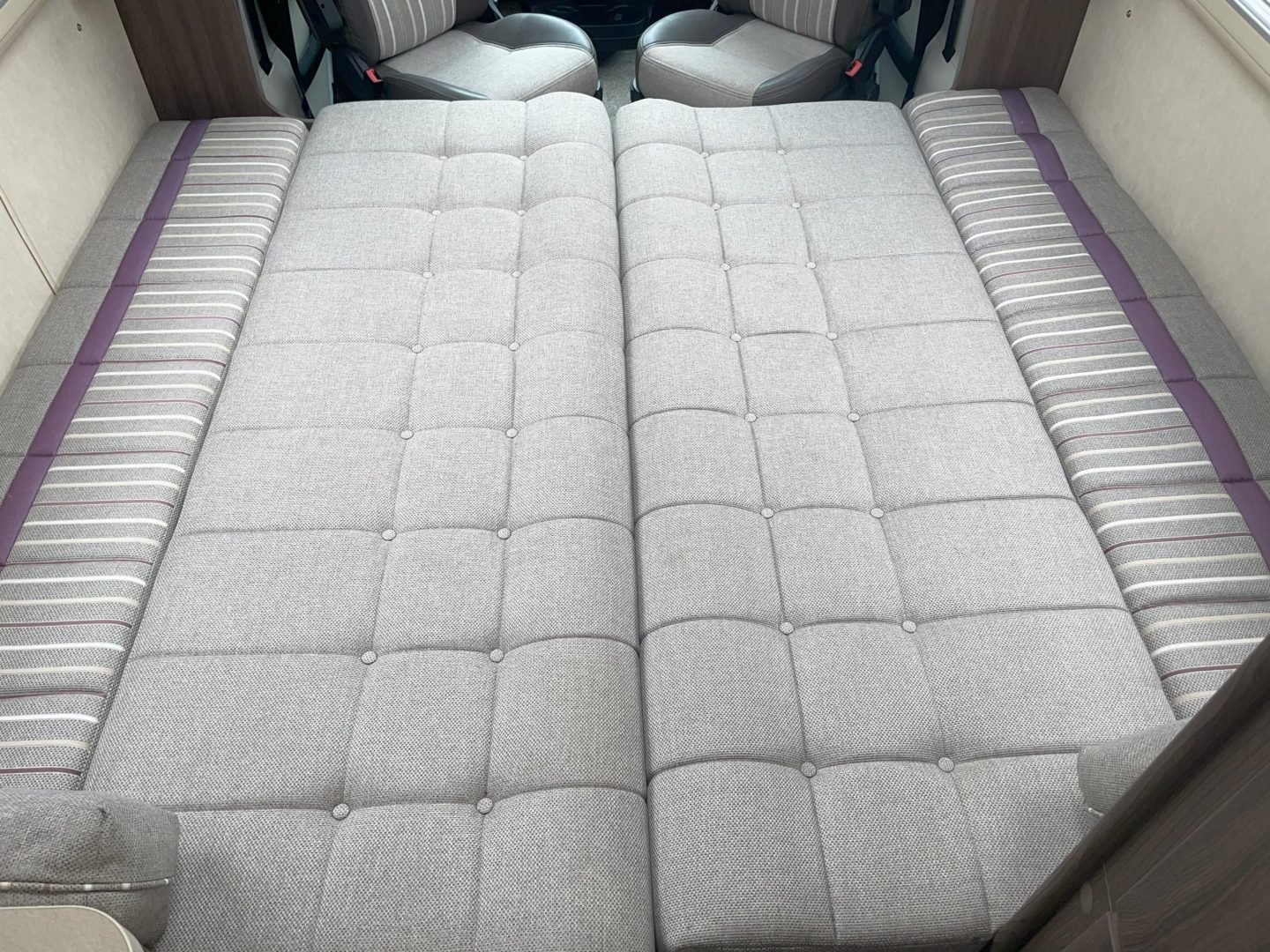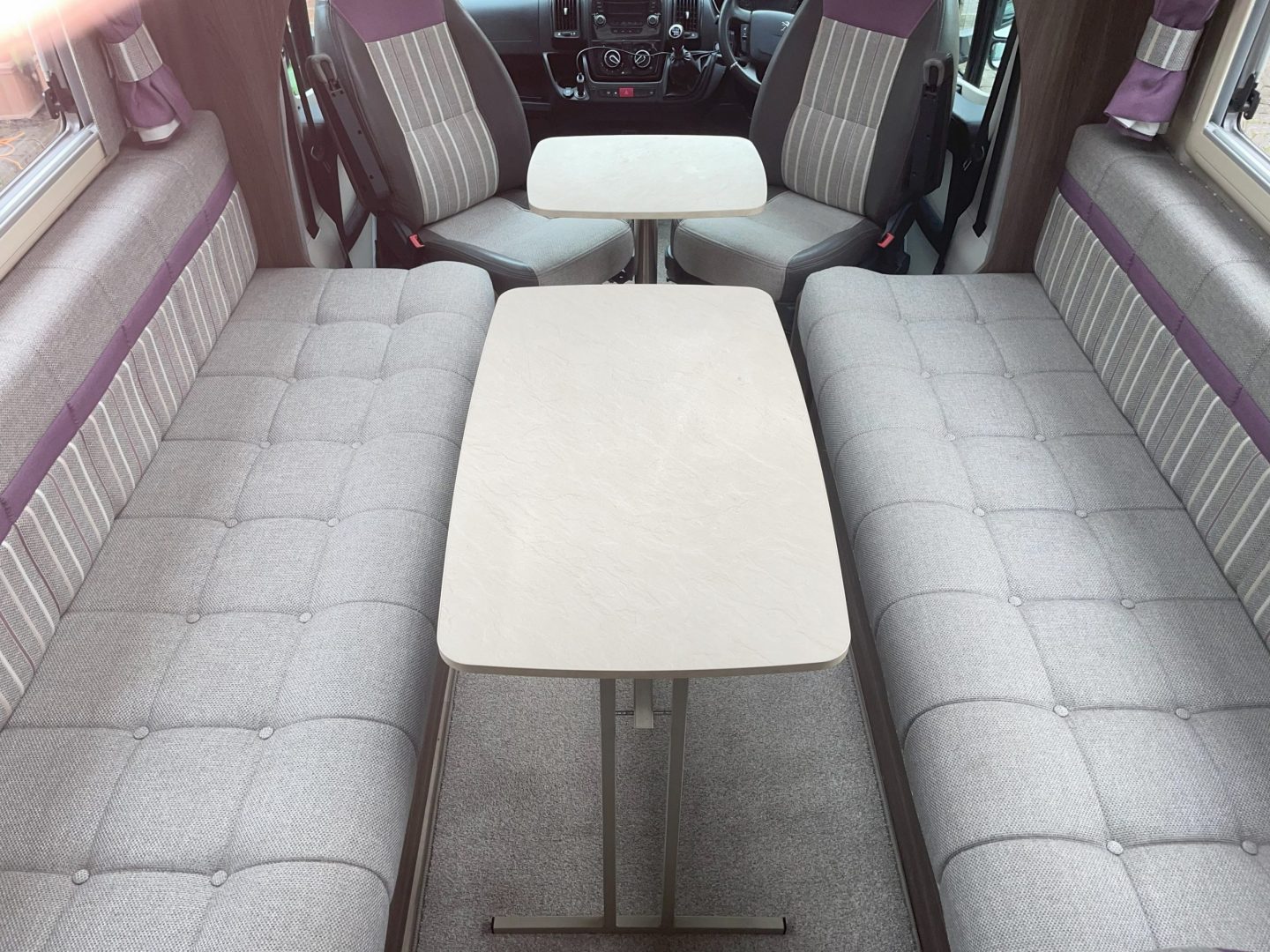 This is a super two berth AutoSleeper with just two owners from new with a full service history and very low mileage of just 17000 miles. It has a very stylish interior being a 2017 model ( registered November 2016, 66 plate ) with more neutral grey upholstery and light wood vinyl flooring under the removable carpets.