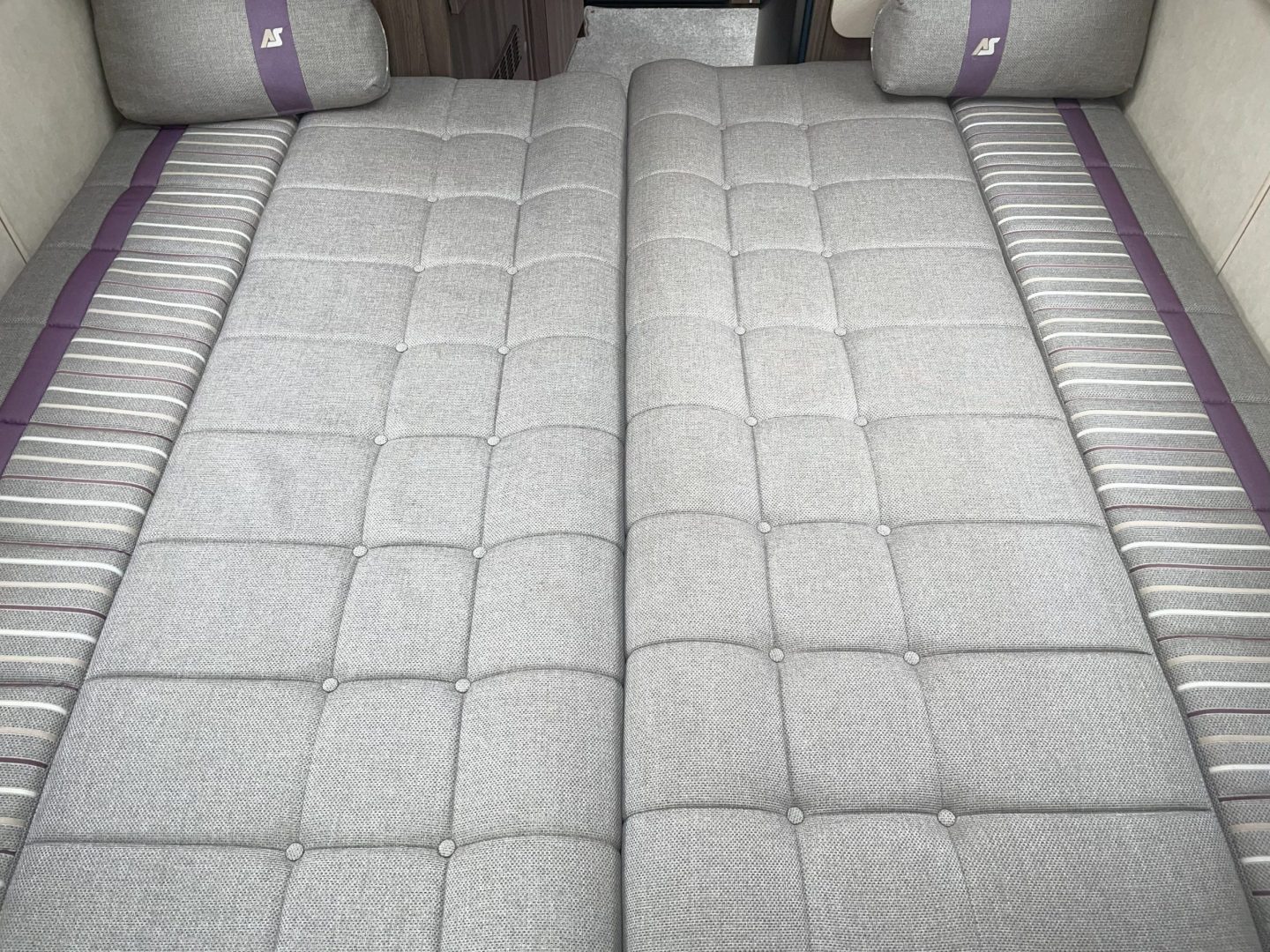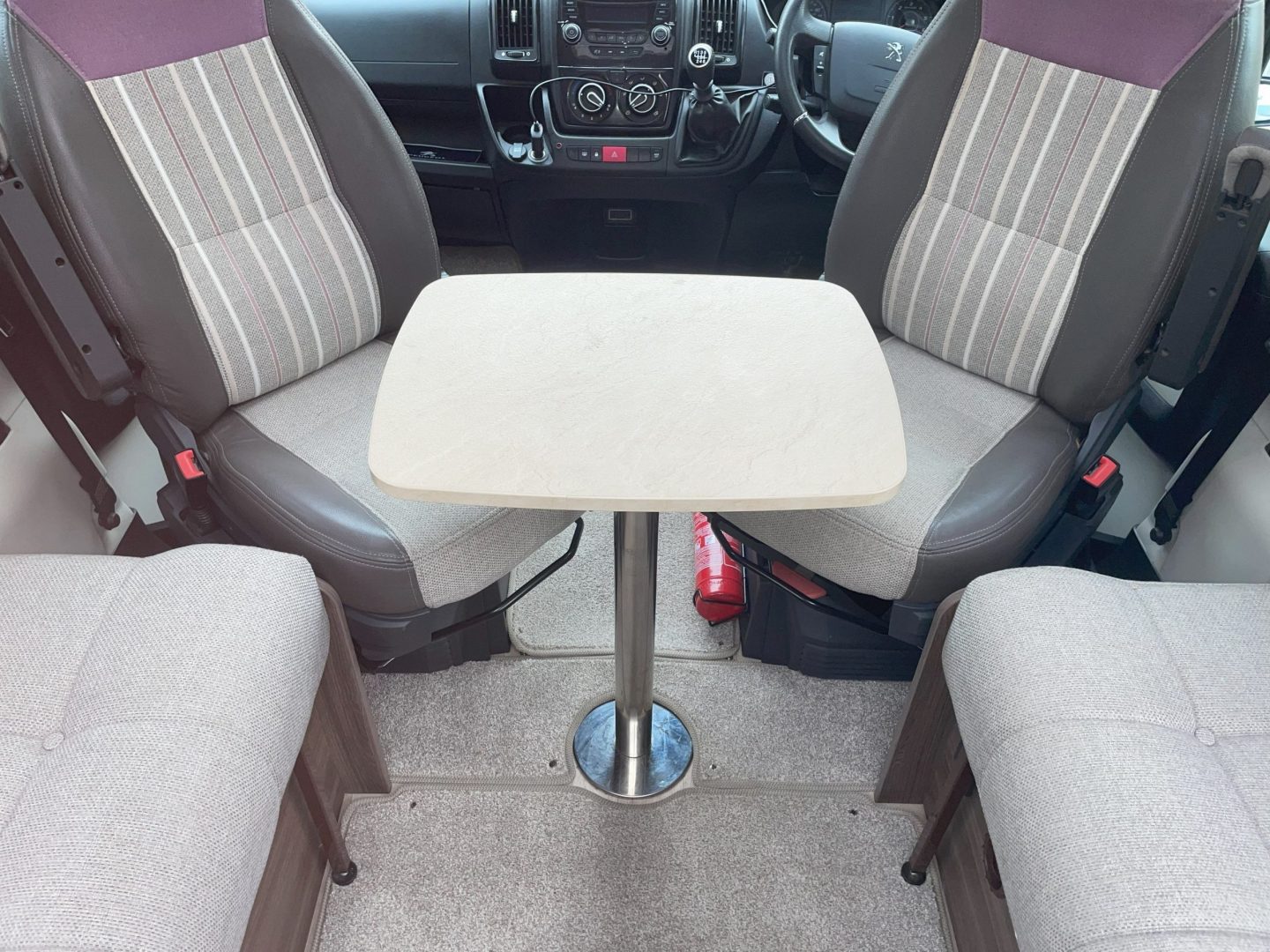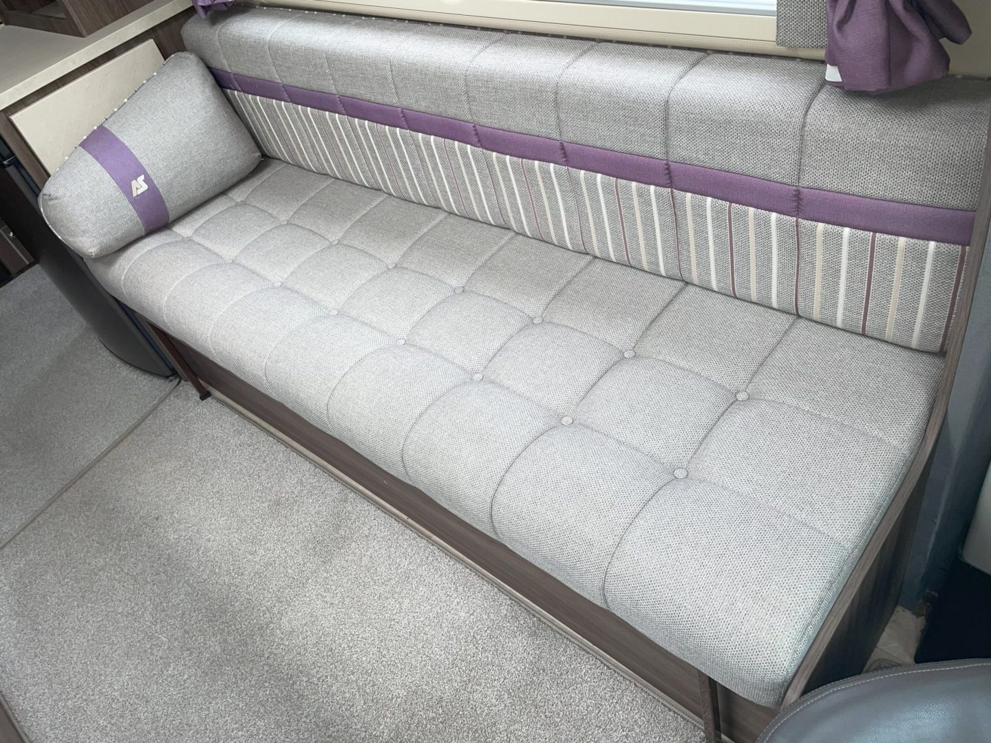 This is a super two berth AutoSleeper with just two owners from new with a full service history and very low mileage of just 17000 miles. It has a very stylish interior being a 2017 model ( registered November 2016, 66 plate ) with more neutral grey upholstery and light wood vinyl flooring under the removable carpets.