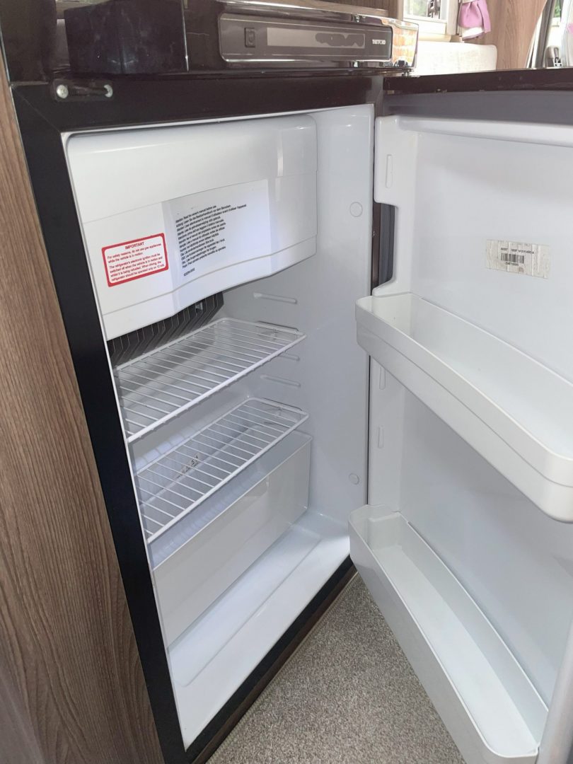 Next to the washroom is a good sized wardrobe, housing both the foldaway dining table and smaller occasional table, and a drawer.